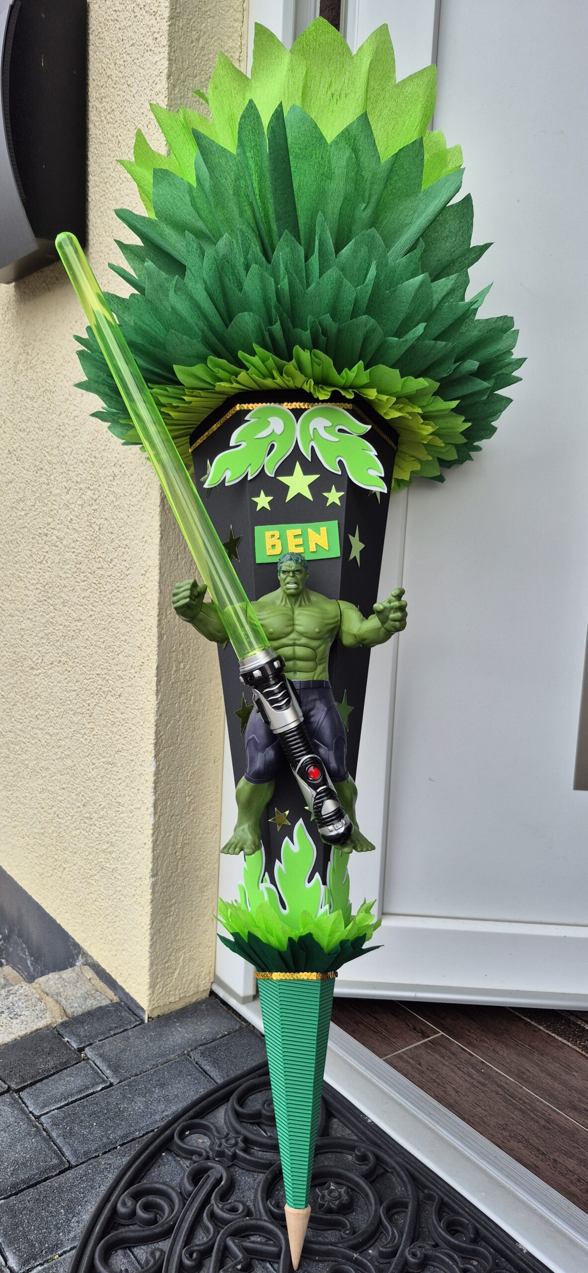 Biete eine hübsche Schultüte mit der abgebildeten Hulk Figur an